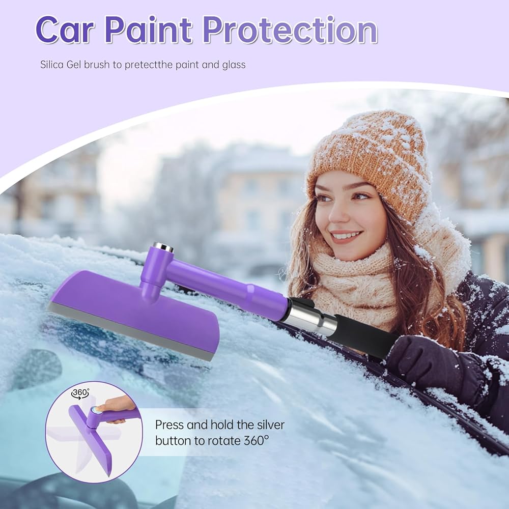 Snow Brush & Ice Scraper: 49.2 قدم فرشاة ثلج للسيارة وكاشطة جليدية ، 360 درجة رأس فرشاة دوارة لمسح الثلج من زوايا مختلفة. يمكن لرأس فرشاة السيليكون حماية سيارتك بشكل أفضل. يمكن أن يساعدك هذا المنتج عالي الجودة في بدء سيارتك بشكل أسرع في الصباح البارد.