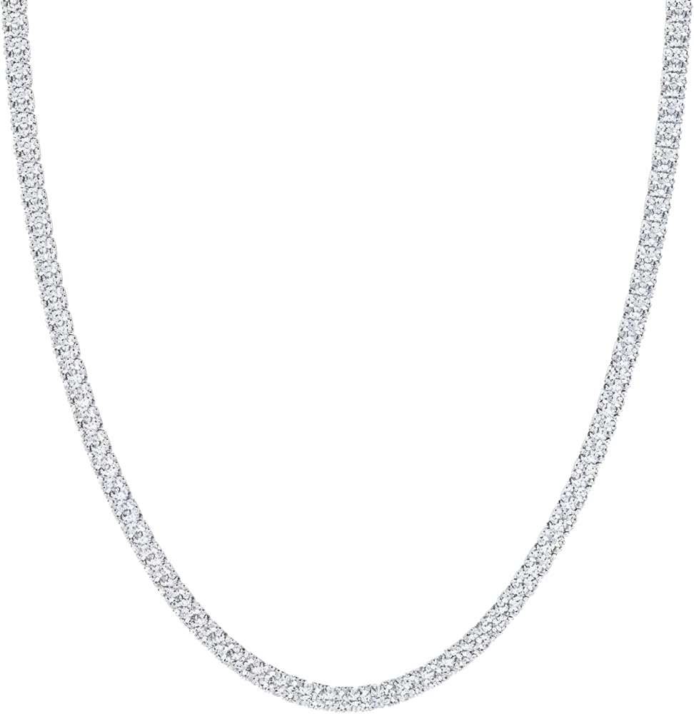قلادة التنس الماسية المعتمدة من IGI من 5.00 إلى 10.00 قيراط للنساء من الذهب الأبيض عيار 14 قيراط مع علبة هدايا (لون E-F، وضوح VS1-VS2) (18 بوصة)