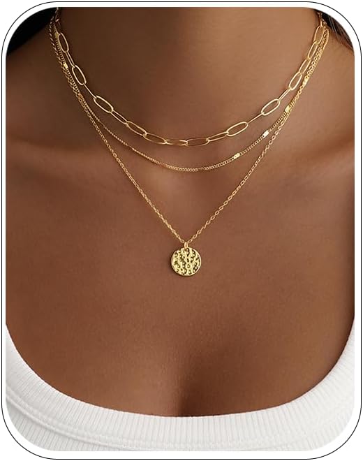 قلادة ذهبية ذات طبقات للنساء ، مكدس قلادة مطلي بالذهب 14K للنساء ، مجموعة قلادة ذهبية قابلة للتعديل لذيذ