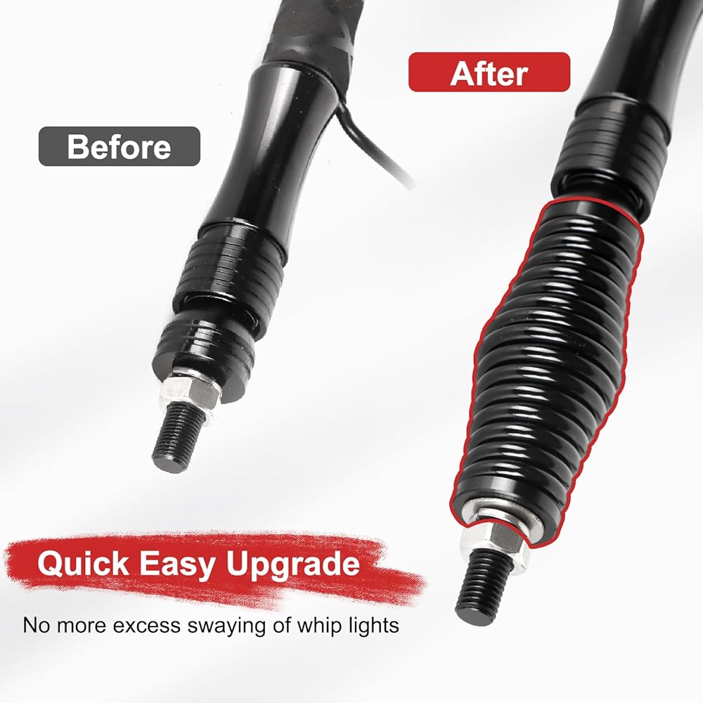 Protect Whip Light:Spring structure adds extra flex to your utv whip lights. It will effectively protect your whip lights from being easily broken when encountering such as low branches and strong winds, when it will let the spring bend, not the whip light itself