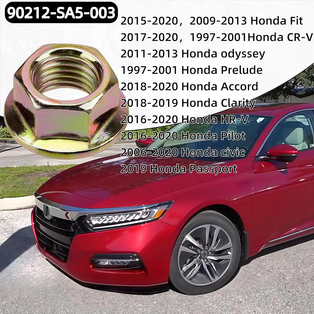 20pcs عادم شفة الصواميل M10-1.25-متوافق مع هوندا أكورد/سيفيك/أوديسي ، أكورا ، تويوتا-قفل تدور مسنن يحل محل 90212-SA5-003