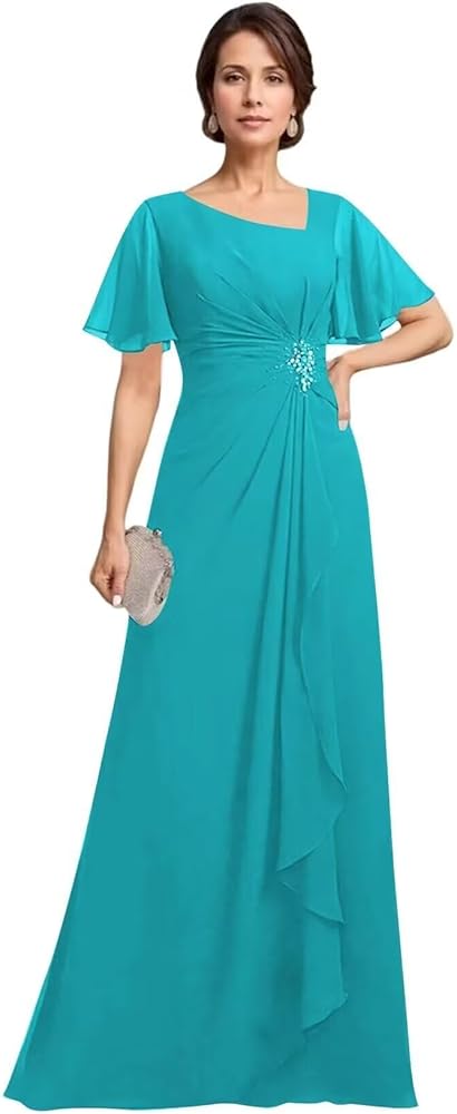 • الميزات: حبات الرقبة غير المتماثلة الأم لفساتين العروس للنساء ، والدة شيفون شيفون قصيرة الأكمام ، والفساتينات زفاف زفاف طويلة الإمبراطورية ، والثوباء المسائية maxi ruched ، والخلف ، مبنية على bra ، linable ، تماما