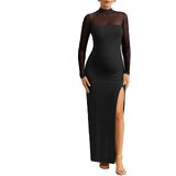 فستان استحمام الطفل الأمومة الخاص بنا مصمم في انقسام مثيرة عالية الساق مع الأكمام الشبكية الطويلة وخط العنق المرتفع. حافظ على أمي الأمومة لتكون في المقدمة عن طريق تصفيف لك مع كعكة أنيقة وأقراط أساسية.