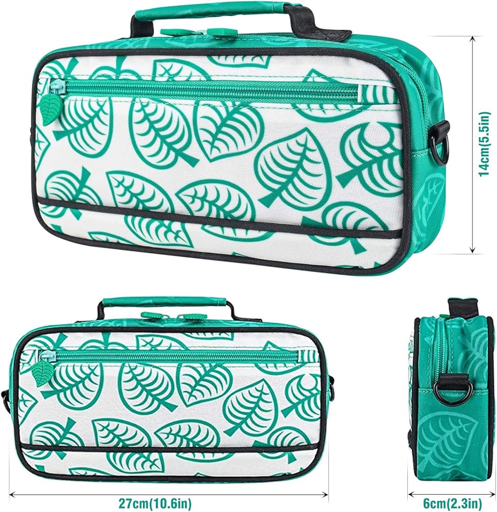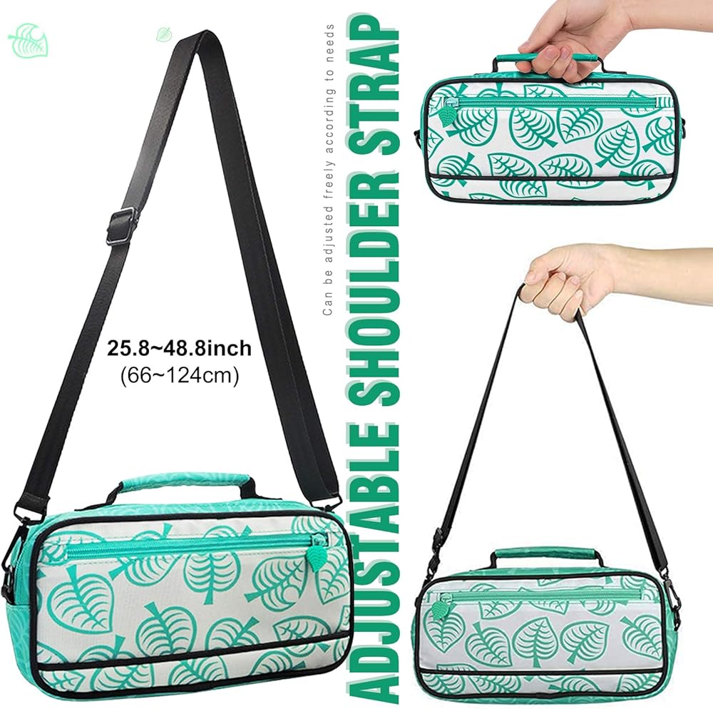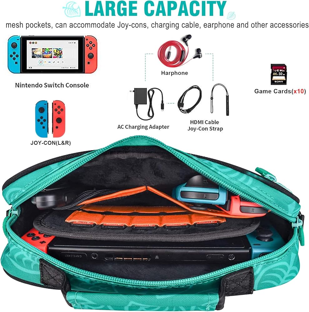 حقيبة سفر من سويتش - حقيبة كتف محمولة لجهاز نينتيندو سويتش [تصميم نيو ليف كروسينج] وحدة تحكم مفاتيح للتخزين، قاعد، كابل شحن، مقبض جوي كون، تحمل ما يصل إلى 10 فتحات لبطاقات اللعب.