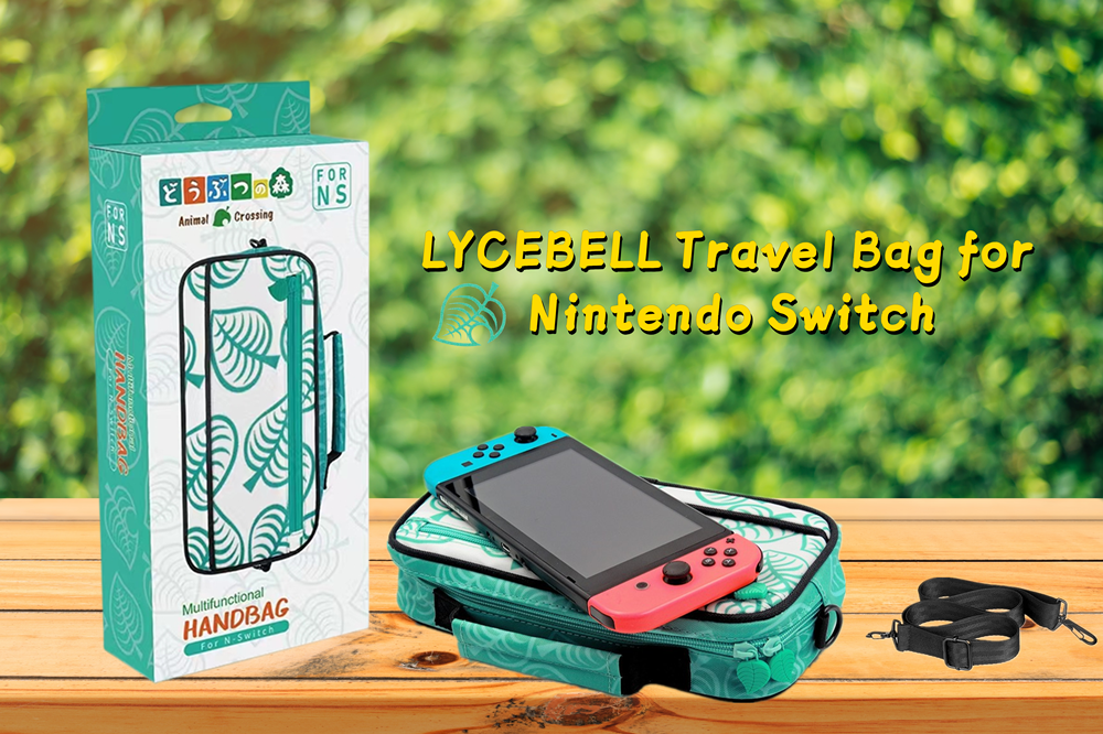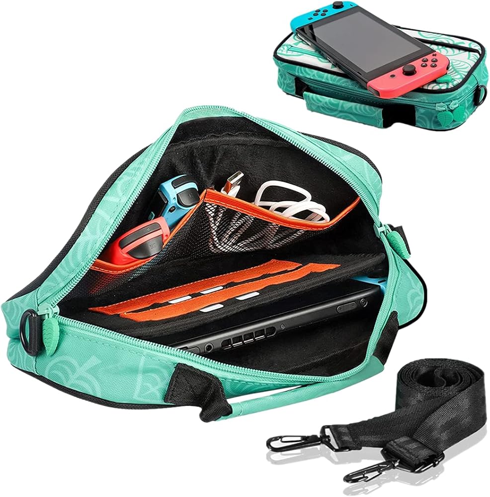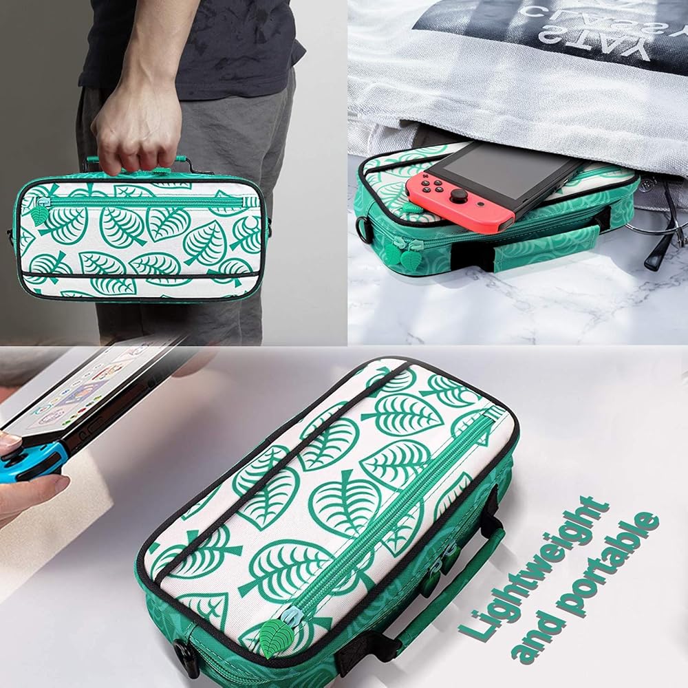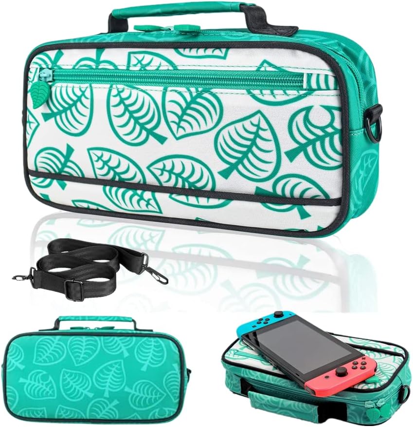 حقيبة سفر من سويتش - حقيبة كتف محمولة لجهاز نينتيندو سويتش [تصميم نيو ليف كروسينج] وحدة تحكم مفاتيح للتخزين، قاعد، كابل شحن، مقبض جوي كون، تحمل ما يصل إلى 10 فتحات لبطاقات اللعب.