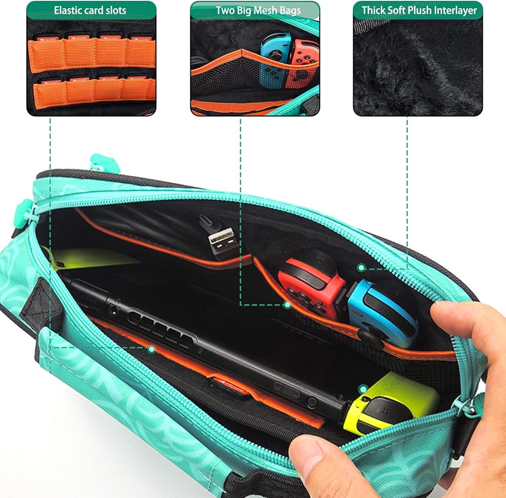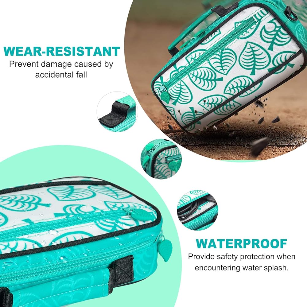 ☘️ حقيبة حمل محمولة لجهاز نينتندو سويتش -- سلسلة الألوان الفيروزية الجميلة مشرقة وأنيقة، مع تصميم بنمط أوراق الشجر اللطيفة. إنها هدية مثالية لمالكي سويتش.