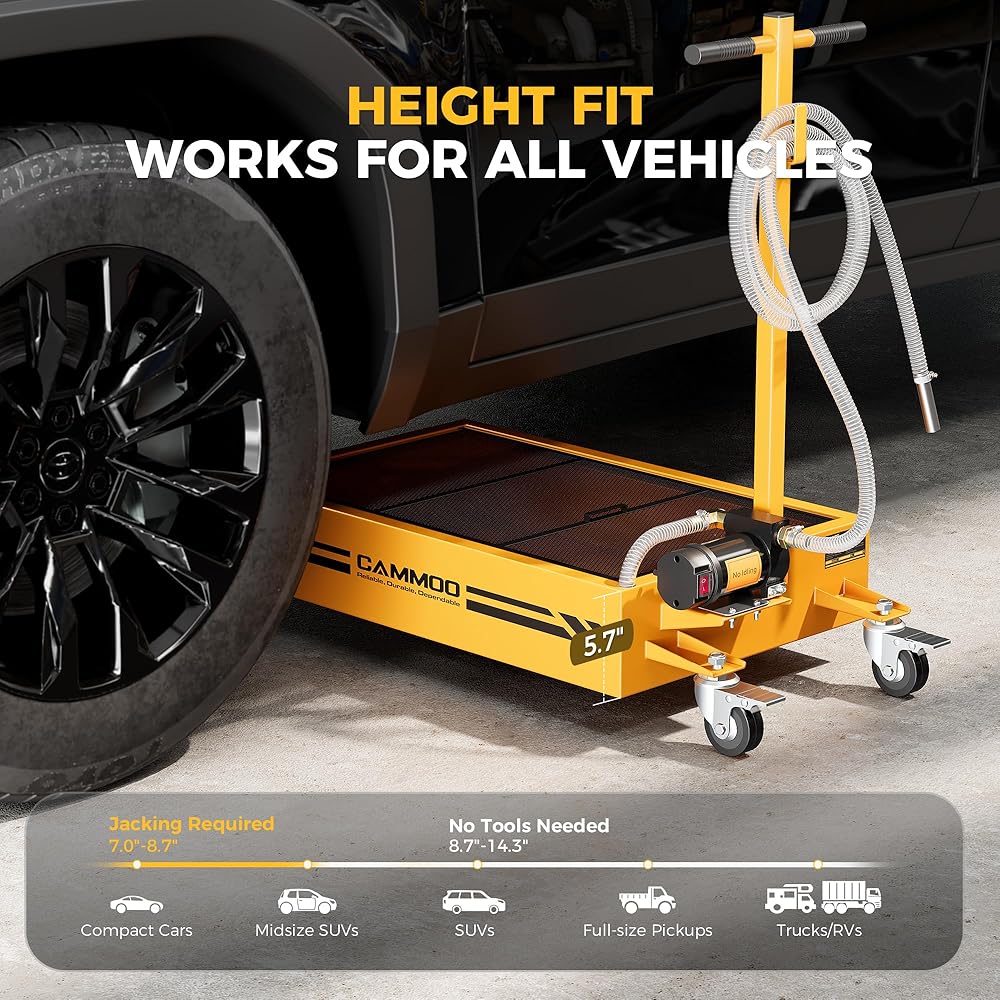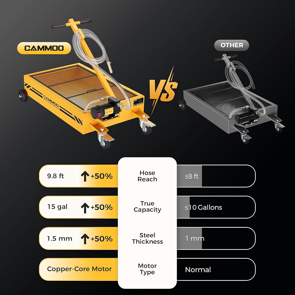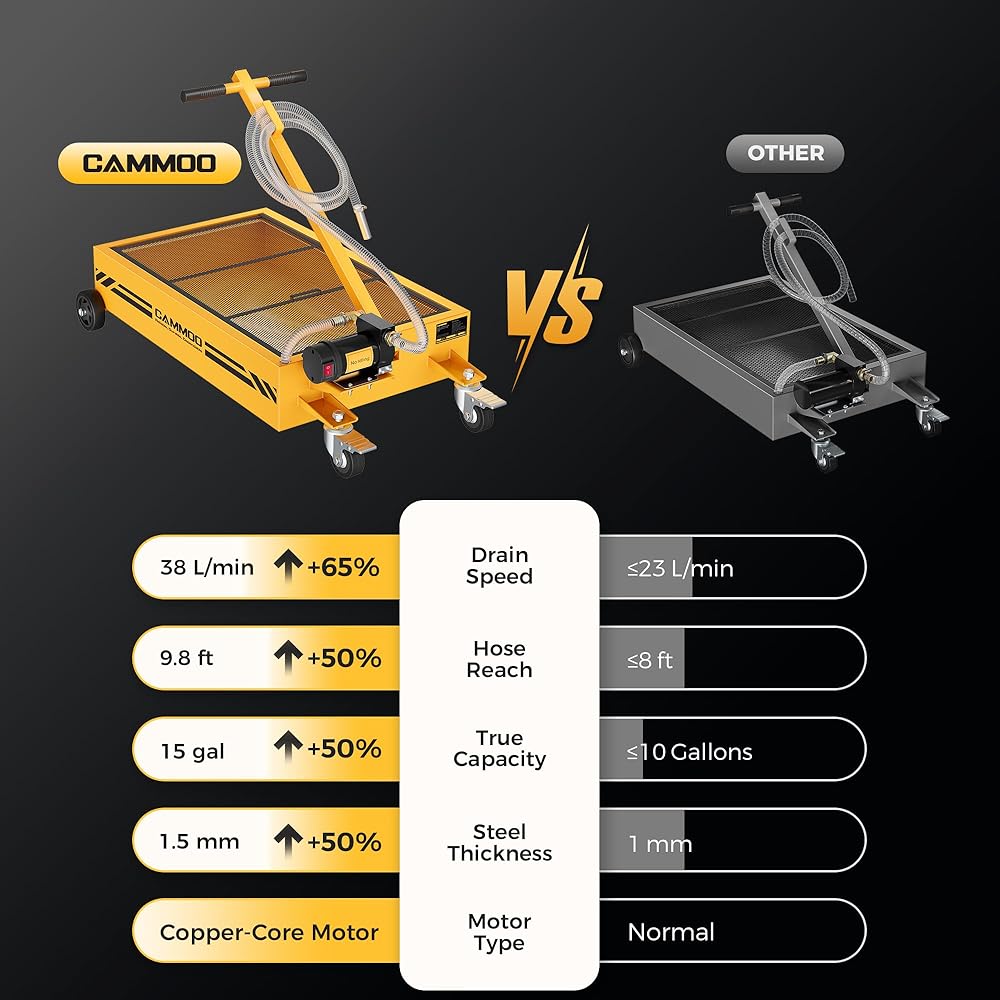تصميم سهل الاستخدام : شاشة التصفية 28.9 × 16.9 بوصة مع ثقوب أصغر على مقاليات تصريف الزيت تقلل من الرشات والمصيد الأجزاء المقطوعة ، مع الحفاظ على وقت نظيف وتوفير الوقت. تضمن المقاليات الثابتة بحجم 4 بوصات وعجلات دوارة 3 بوصات مع مكابح مستقرة ومؤسسة لأقواس تصريف الزيت-حتى على المنحدرات.
