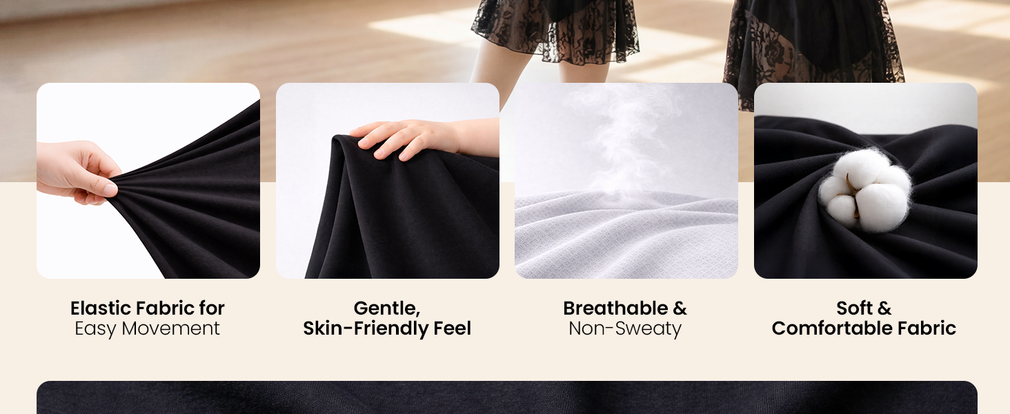 النسيج الممتاز: تم تصميم ثياب الباليه في Gogokids للبنات في المقام الأول من مزيج من القطن عالي الجودة ودنة Lycra ، مما يوفر نسيجًا ناعمًا وقابل للتنفس الذي يشعر بعملية ضد الجلد. يوفر النسيج الممتاز امتدادًا ممتازًا ، مما يسمح للأطفال بأداء مختلف حركات الرقص بسهولة.