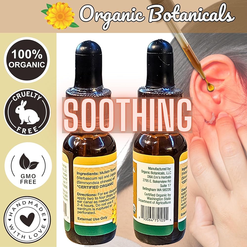 إغاثة آلام فعالة - احتضن قوة زيت Mullein العضوي مع قطارة الأذن للراحة من أذنها. توفر صيغةنا المصممة بعناية حلاً طبيعيًا لأولئك الذين يبحثون عن دعم فعال ومهدئ.