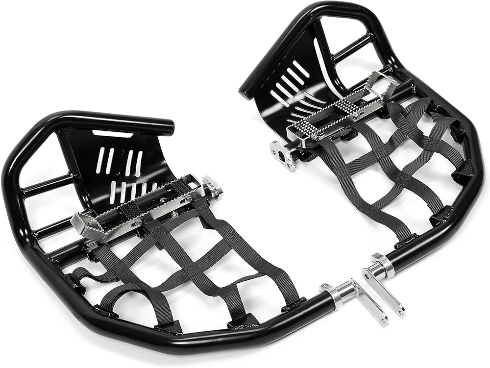 FEATURE - Color: Black Nerfs & Black Nets. The Nerf Bars Foot Pegs will protect your feet from flying debris, tire interference, and accidental snags while riding. Inner crisscross traction teeth reduce boot slippage and wear