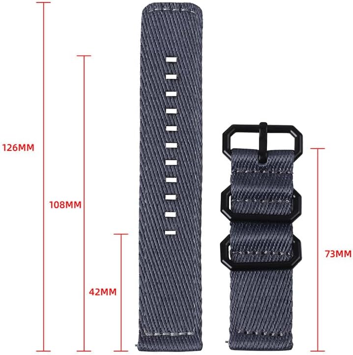 Dimensions: 22mm width at the interface; long strap 126mm, short strap 73mm; wrist adjustment range: minimum 42mm, maximum 108mm; see the second size chart; (Please check the dimensions of your watch band before purchasing.)