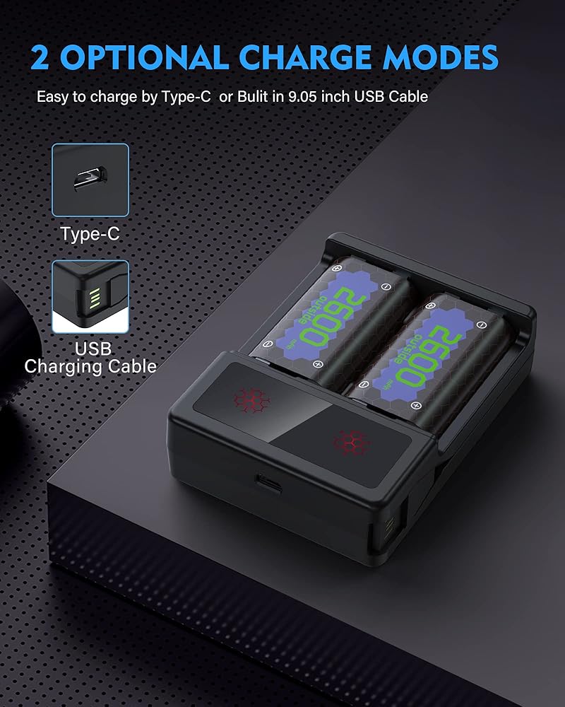 خياران للشحن المريح: يحتوي شاحن حزمة بطارية وحدة التحكم xbox one القابلة لإعادة الشحن على سلك طاقة USB مدمج مقاس 9.05 بوصة ومنفذ شحن من النوع C ليوفر لك طريقة شحن مريحة، ويمكنك تخزين سلك USB المرفق بعيدًا عند عدم الاستخدام. يتيح لك خياران للشحن اختيار طريقة الشحن المفضلة لديك في أي مكان. إنها ملحقات إكس بوكس أساسية لوحدات تحكم إكس بوكس ون/سلسلة إكس الخاصة بك