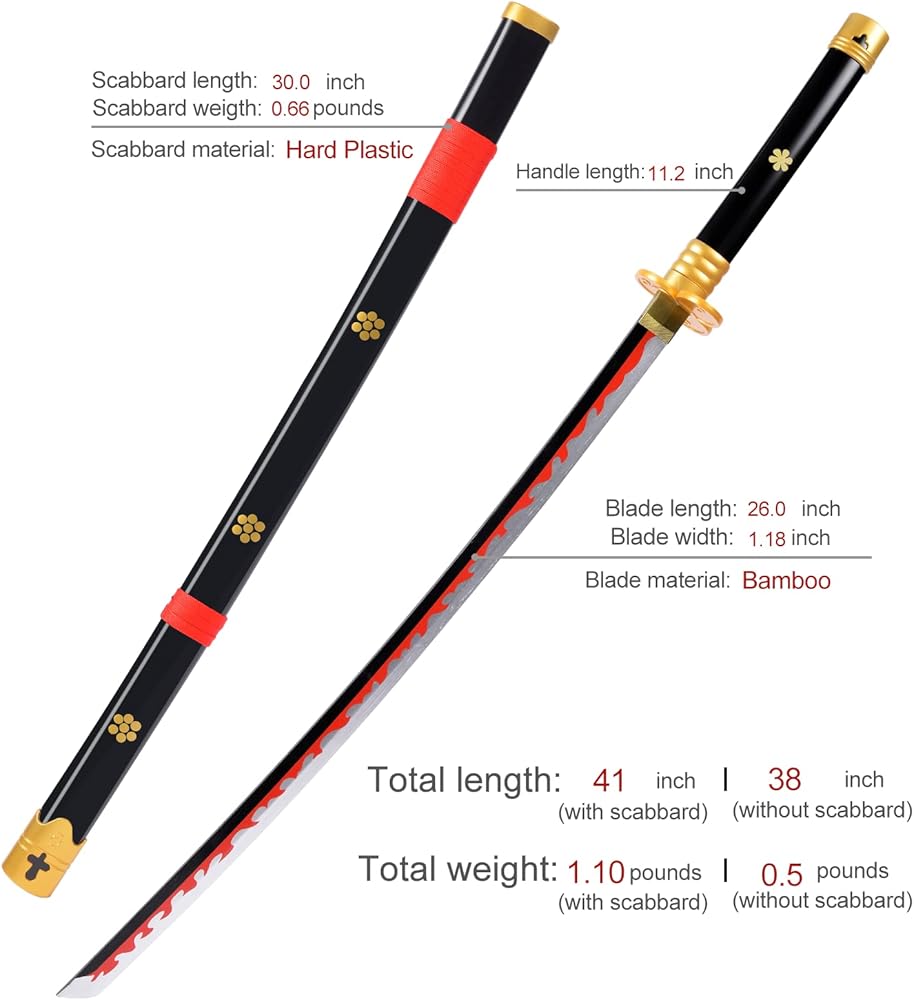 Anime Sword 41 inch,Zoro Sword/wado ichimonji Sword/ Anime Original Texture ,for Role-Playing and Collection, with One Display Stand