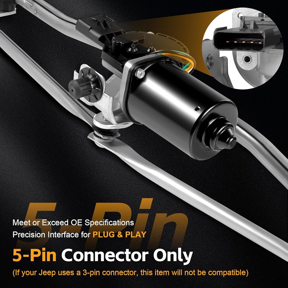 • 【Compatible with Jeep Wrangler】Windshield wiper motor linkage assembly for 2007 2008 2009 2010 2011 Jeep Wrangler 3.8L V6; 2012-2017 Jeep Wrangler 3.6L V6; 2018 Jeep Wrangler JK 3.6L V6. This wipers motor is designed with a 5-pin electrical connector, Please check your original motor before purchase