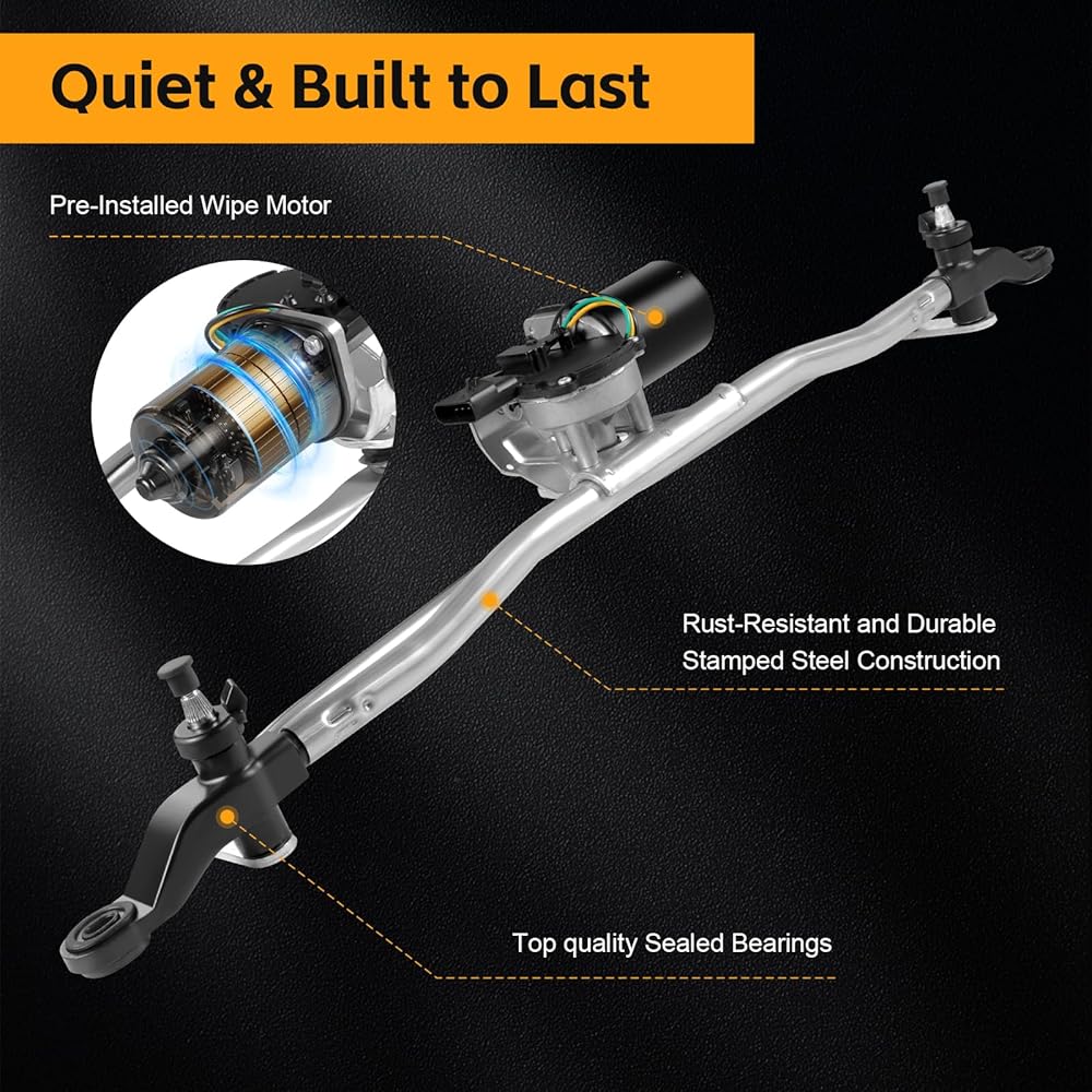• 【Upgrade Quality】Windshield wiper transmission linkage assembly is precision-formed from stamped steel components. Designed to eliminate harsh, grinding motor noise while ensuring exceptional wiping performance and long-lasting Durability