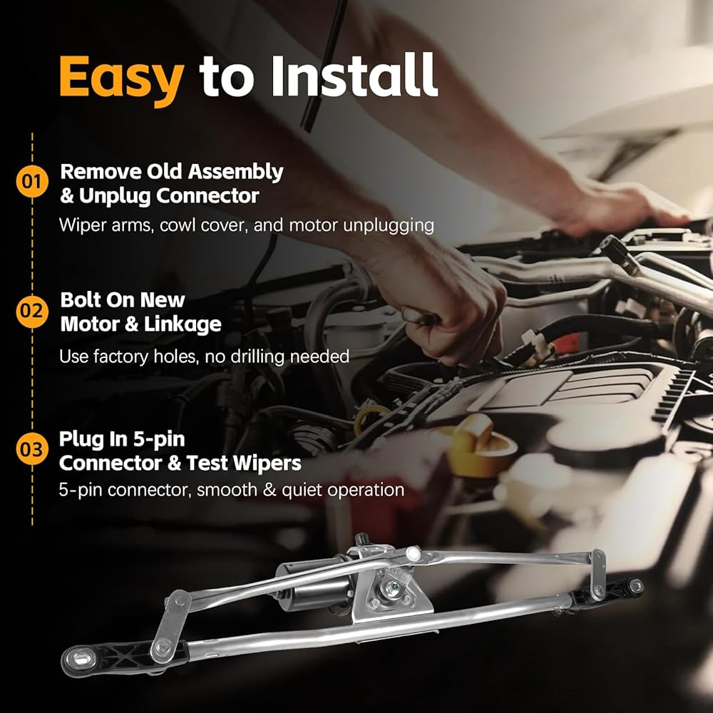 • 【Easy Installation】The wiper linkage assembly designed with a plug & play 5-pins connector and pre-assembled linkage and wiper motor, No modification, programming or complicated tools required, direct OEM replacement, matches factory mounting holes for easy bolt-on installation, save a lot of time and cost