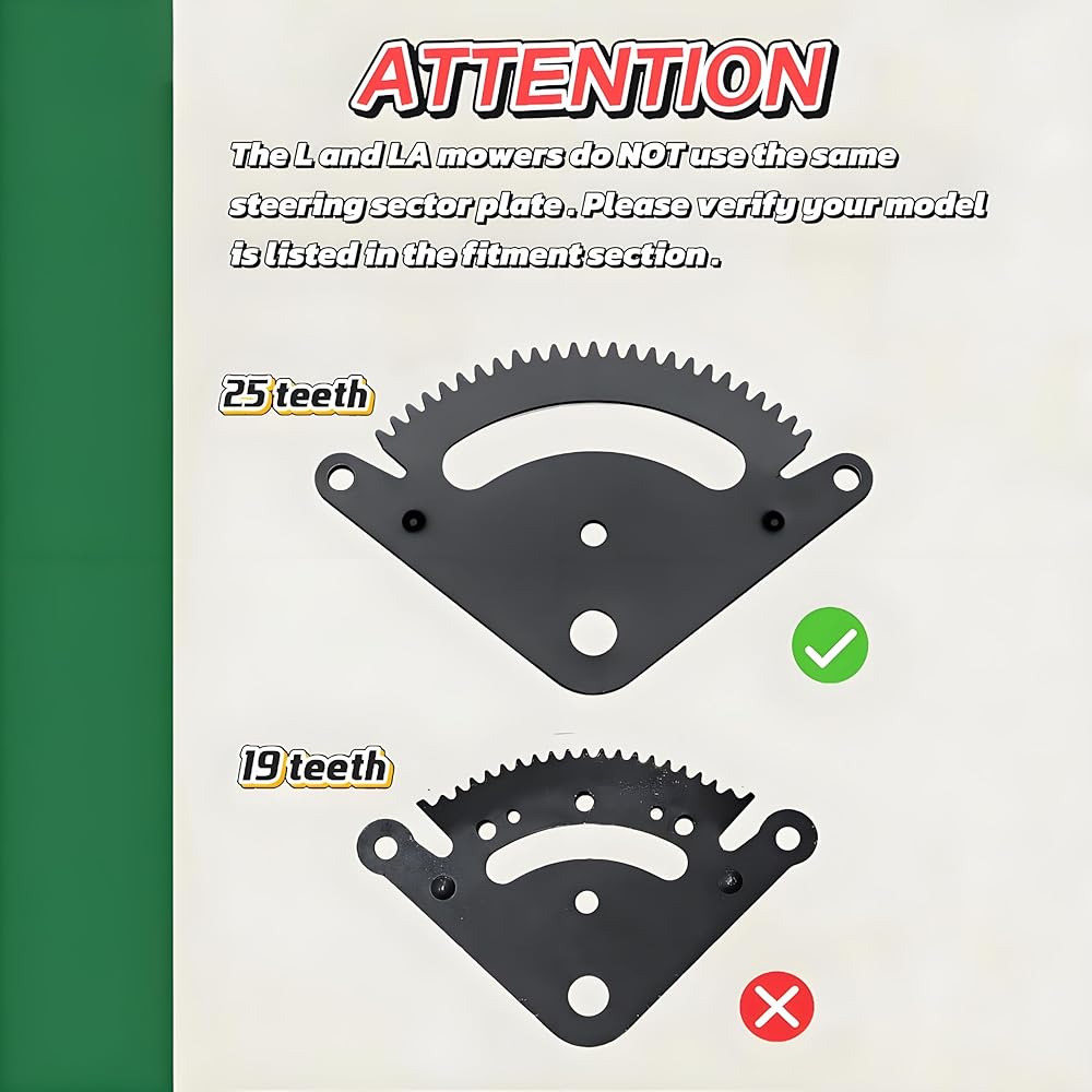 • 【Notice】: The L and LA mowers do NOT use the same steering sector plate. Please verify your model is listed in the fitment section