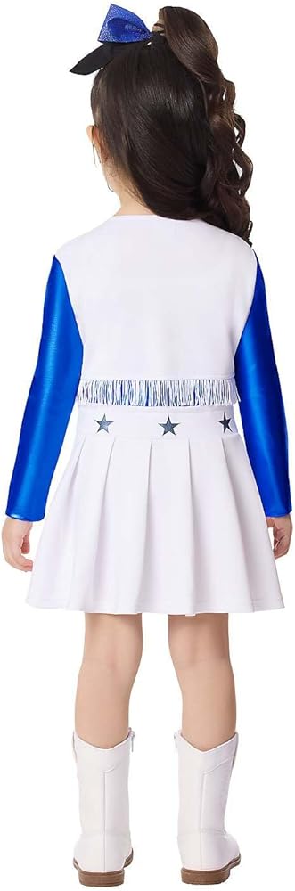 This officially licensed outfit includes a Dallas Cowboys-inspired cheer dress with an attached vest and a hair bow.