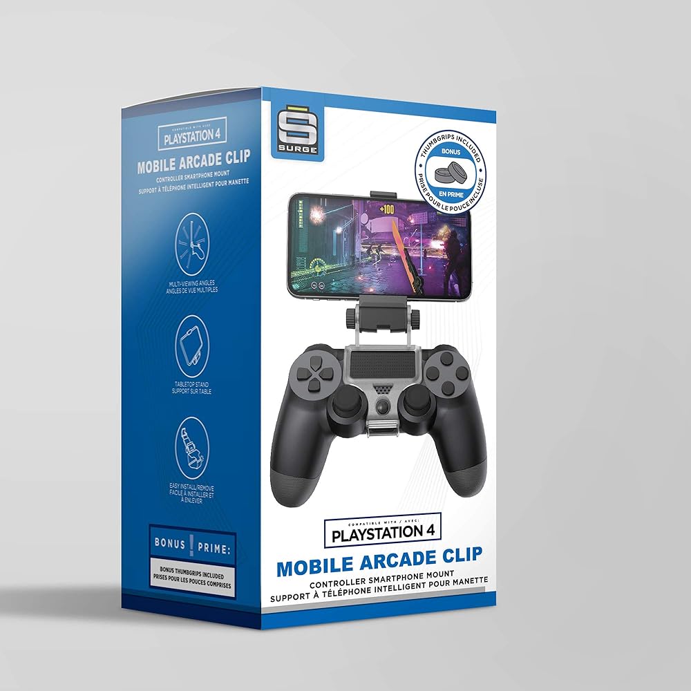 حامل الهاتف لوحدة تحكم بلاي ستيشن 4 من سيرج هو الحل الأمثل لأي شخص يلعب الألعاب على هواتفهم الذكية أثناء استخدام وحدة التحكم. يسمح لك المشبك بتوصيل الهاتف بوحدة التحكم للحصول على رؤية مثالية أثناء اللعب. يمكنك أيضًا إزالة المشبك واستخدامه كحامل هاتف بزوايا قابلة للتعديل لاستيعاب الألعاب على سطح الطاولة.