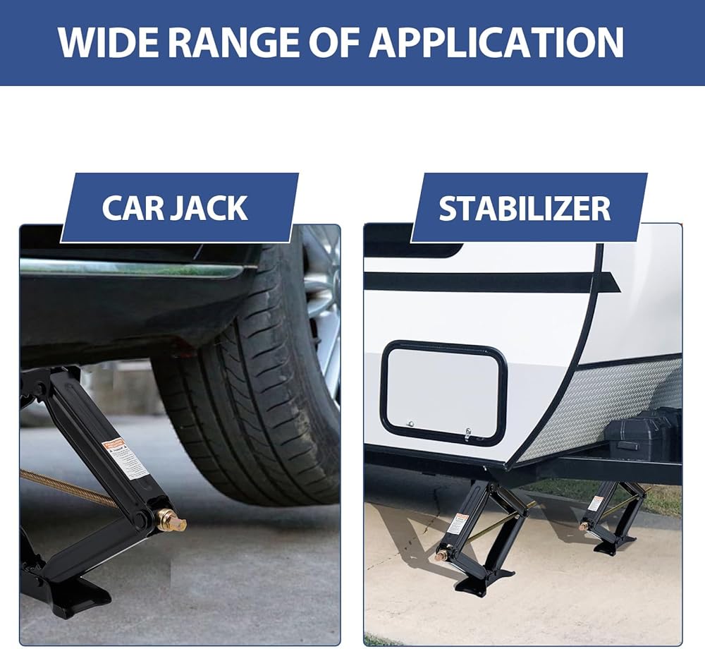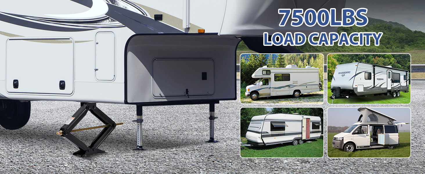 سعة الحمل الشاقة 7500 رطل-تم تصميمها لـ Big RVS & Trailers: كل جاك مقص يتولى ما يصل إلى 7500 رطل-على سبيل المثال لتثبيت مقطورات السفر الكبيرة أو العجلات الخامسة أو شاحنات العربة. يتكيف من ارتفاع منخفض 4 "إلى ارتفاع كامل 24" ، مما يجعله مثاليًا لكل شيء من التوقف السريع إلى تسوية المخيم على المدى الطويل.