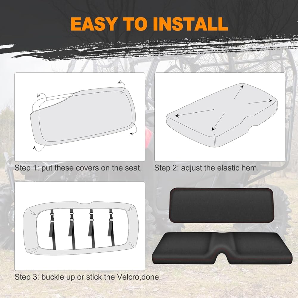 التثبيت السهل: يمكنك تثبيت غطاء مقعد RTV في بضع دقائق! ما عليك سوى وضع هذه الأغطية على المقعد الأمامي ، واضبط الحافة المرنة ، وعصا الفيلكرو.