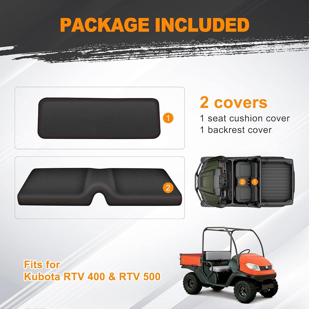 تم تصميمه لـ Kubota RTV 400 500: غطاء مقعد RTV متوافق تمامًا مع Kubota RTV 400 & RTV 500. يرجى التحقق من طراز RTV قبل الشراء.