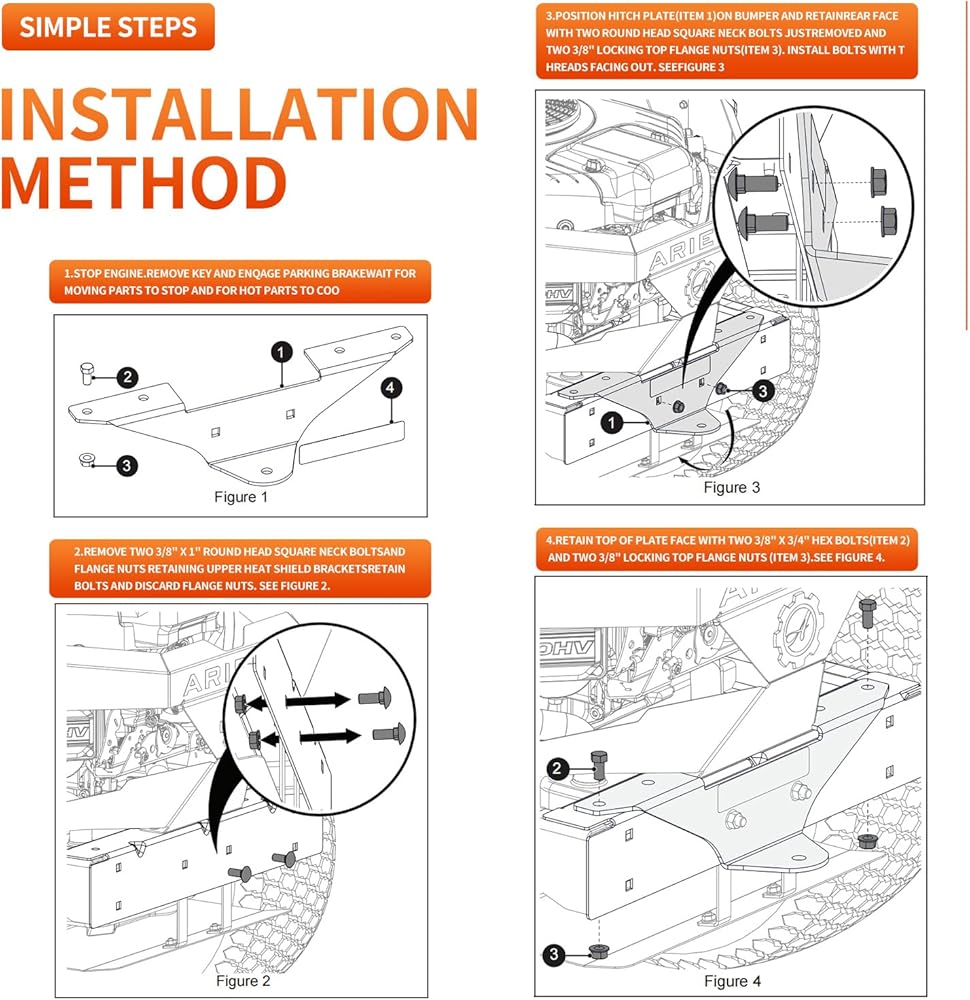 ✅ ENHANCE YOUR MOWER'S VERSATILITY Once installed, the hitch tow lawn carts, trash bins, and garden equipment racks effortlessly, expanding your mower's functionality. Transform your mower into a yard-work powerhouse