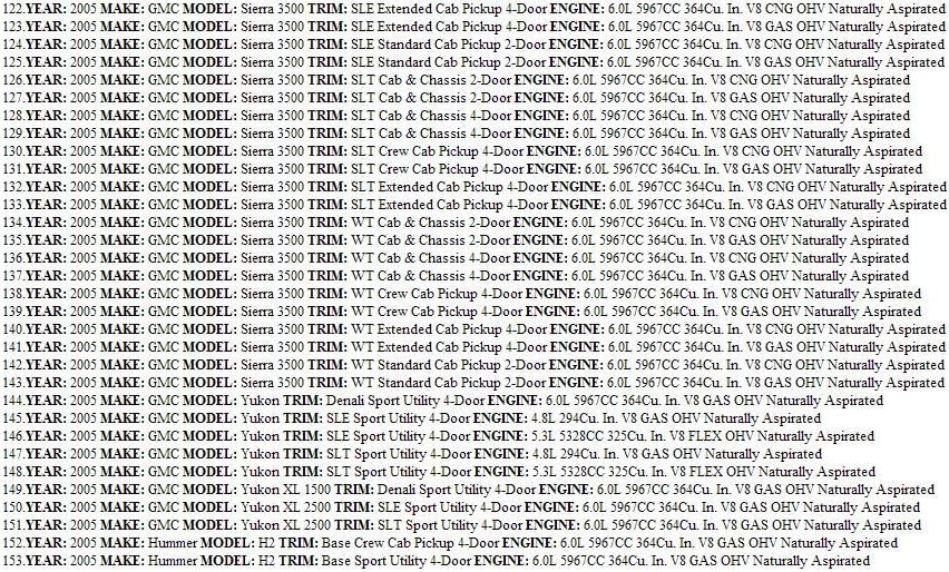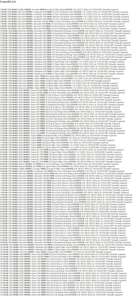 - هذا E.C.M. يناسب المركبات التالية: 2005-2006 4.8/5.3/6.0/L Silverado (1500 ، 1500HD ، 2500HD ، 3500).