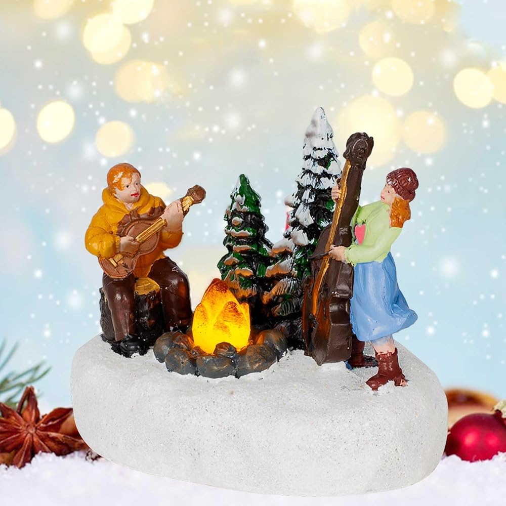 Christmas Village accessories figurine Scene, Campfire play guitar, grilling, outdoor oven with LED Lights - Battery Operated (not included) by innodept12. This collectible piece is made from high-quality Polyresin material with intricate hand-painted details and is a delightful addition to your holiday decor.