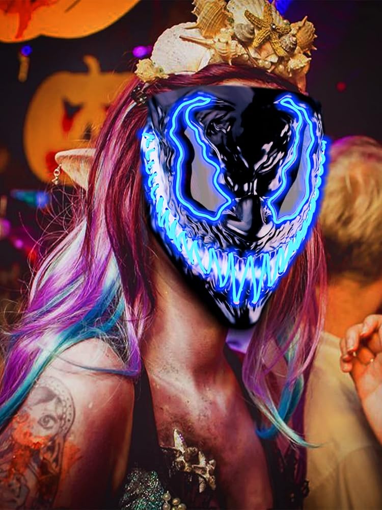 【𝐐𝐔𝐀𝐍𝐐𝐔𝐄𝐑 مهمتنا هي مفاجأة المشجعين بالخيال والأناقة. يتضمن هذا القناع المتوهج دليل الإعداد ويدعمه ضمان الرضا لمدة 30 يومًا. اجعل قناع الأزياء الخاص بك في الحياة وقيادة النور هذا الهالوين!