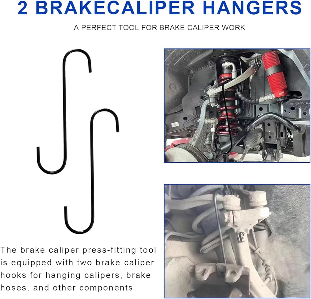 【تشمل التعبئة】 يمكن تثبيت خطافات أداة لوحة الفرامل المتضمنة على الفرجار الفرامل لتأمين موضعها أثناء الصيانة. بعد ضغط المكبس ، يمكن إزالته على الفور عن طريق عكس اتجاه السقاطة لأداة ضغط الفرجار الفرامل.