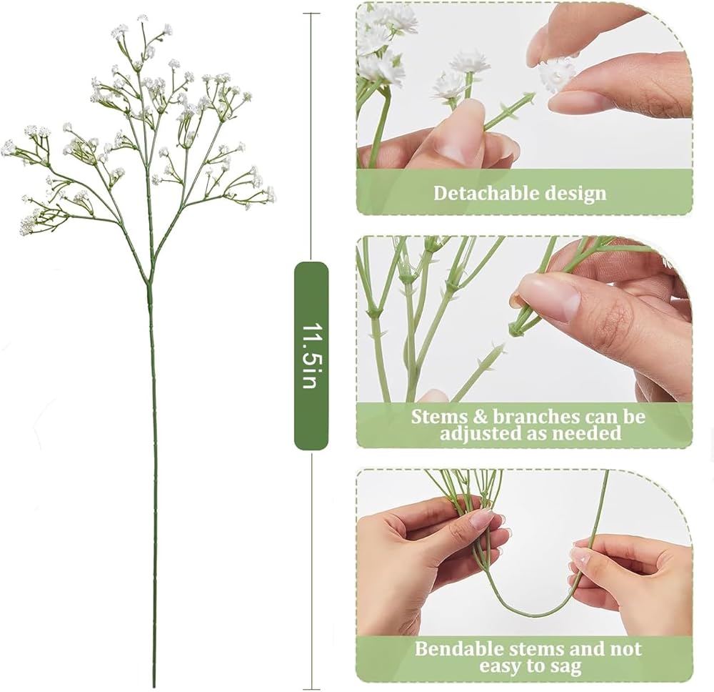 • تصميم واقعي: تم تصميم زهور أنفاس أطفالنا الاصطناعية بدقة لتقليد الجمال الدقيق للزهور الحقيقية ، مما يضمن مظهرًا جديدًا ونابضًا لا يتطلب أي صيانة أو سقي. هذه الزهور الاصطناعية تجلب لمسة ساحرة لأي ديكور.