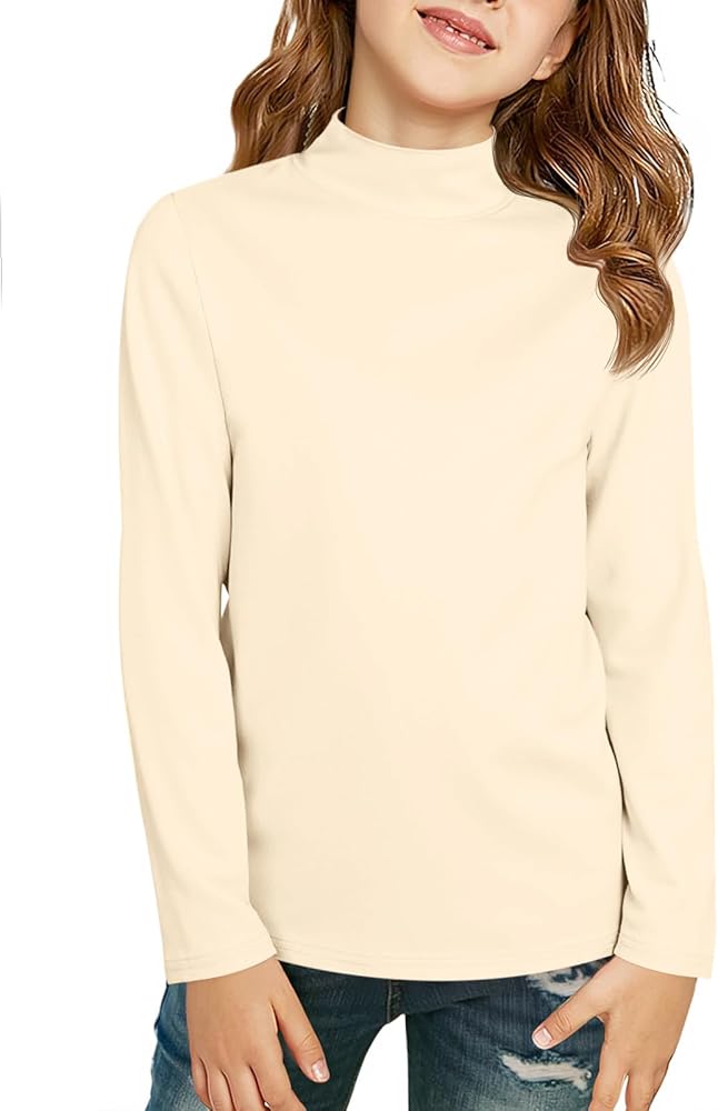 بلوفر بناتي بأكمام طويلة ورقبة وهمية للأطفال في فصل الخريف والشتاء، قمصان أساسية بطبقة نشطة من 5 إلى 14 عامًا