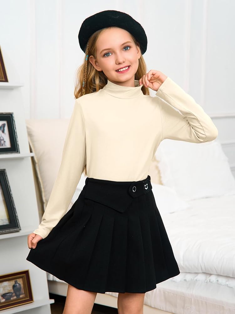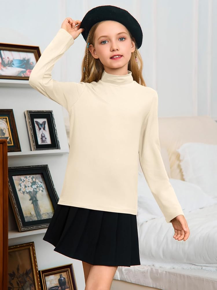 • الراحة الوهمية الصديقة للطفل: الفتيات الطويل الأكمام الطويل الأكمام يتميزان بتصميم لطيف عنق وهمية يوفر دفئًا أنيقًا ومريحًا ، مما يضمن الراحة طوال اليوم وحرية الحركة