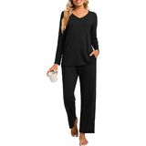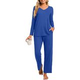 التصميم البسيط للأزياء: قام Syoss المكون من قطعتين بتصميم الجزء العلوي من الأكمام الطويلة مع V-Neck ، و Pajama Long Pants مع حزام مرن ، وجيوب مفيدة. تم تصنيع الأسلوب في تصميم كلاسيكي مع فضفاض ، مما يجعله مريحًا وأنيقًا للارتداء