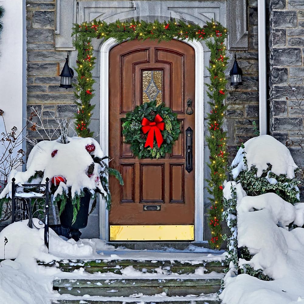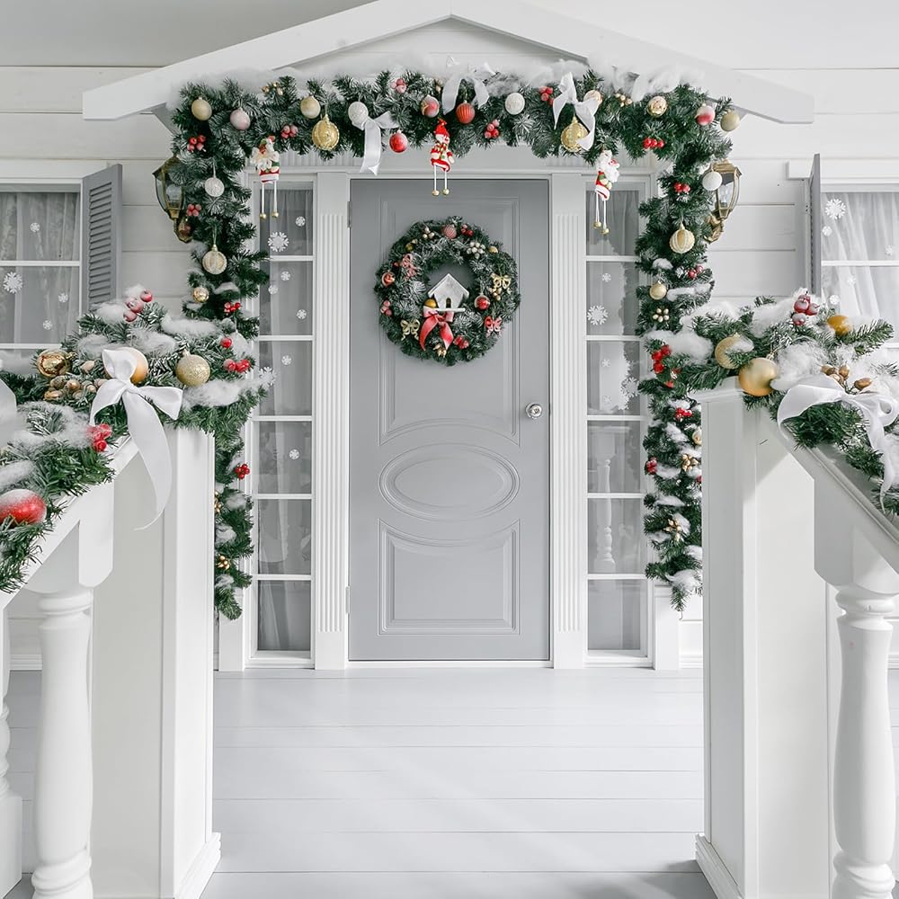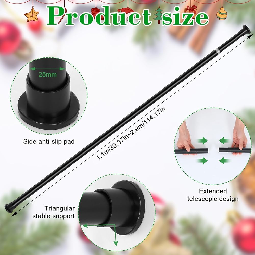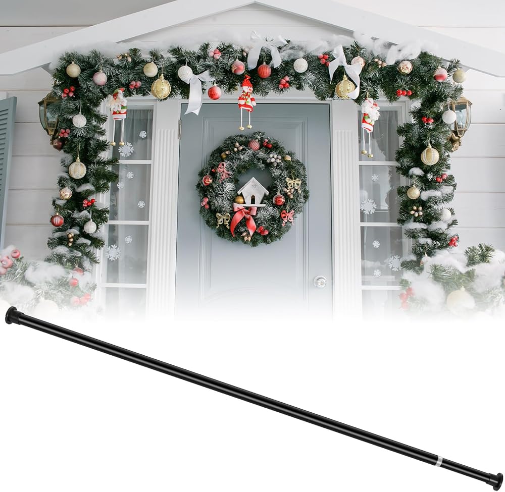 Adjustable & Versatile: our front door tension rod garland holder is adjustable from 39.37" -114.17", with high design flexibility, allowing you to customize the length as needed, ensuring that garland, wreaths, holiday lights, or other decorations are firmly fixed in various spaces such as doors, windows, or fireplace