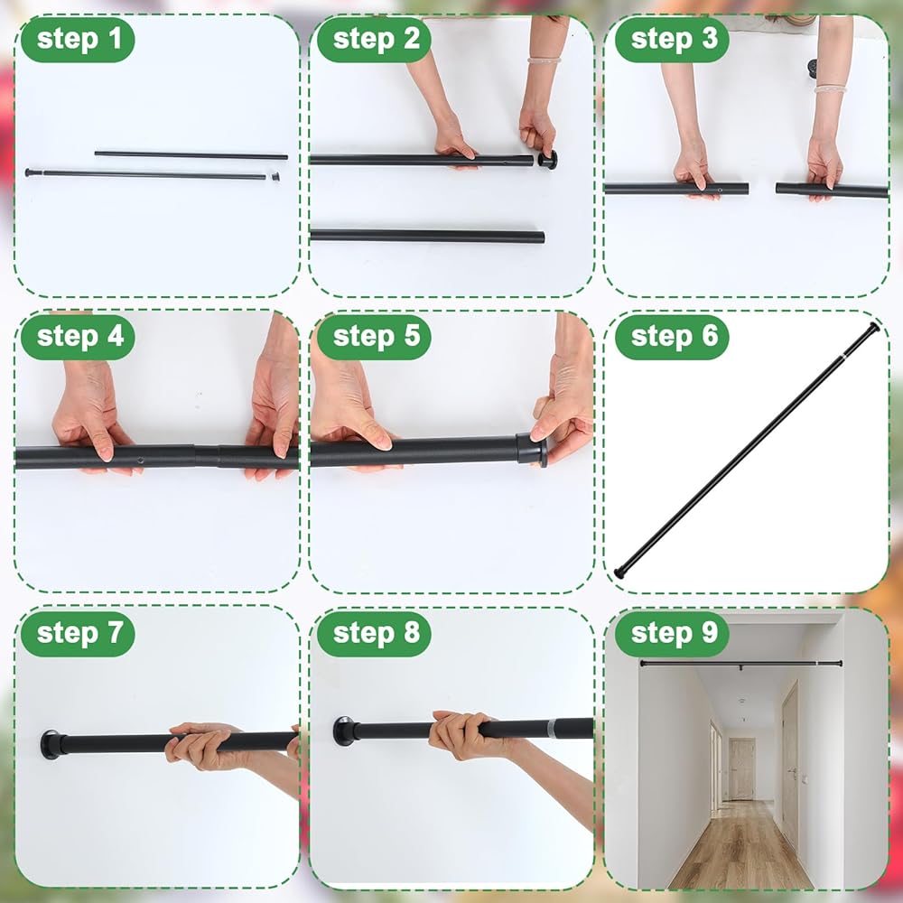 This versatile adjustable garland hanger pull rod is not only suitable for holidays, but can also be applied as a shower curtain pull rod, wardrobe divider or laundry room organizer.