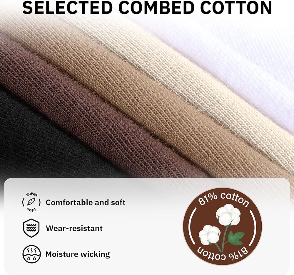 الجوارب التي تمشيطها من القطن النسائي: مصنوعة من القطن المقطوع بنسبة 81 ٪ ، و 15 ٪ من النايلون و 4 ٪ من مزيج سبانديكس ، توفر هذه الجوارب نعومة استثنائية وراحة تشبه السحابة. النسيج القابل للتنفس يخلط بشكل طبيعي الرطوبة ، مما يمنع التعرق أو ارتفاع درجة الحرارة للارتداء طوال اليوم.