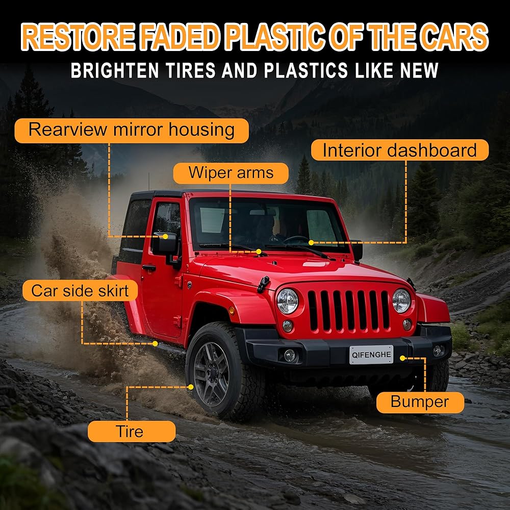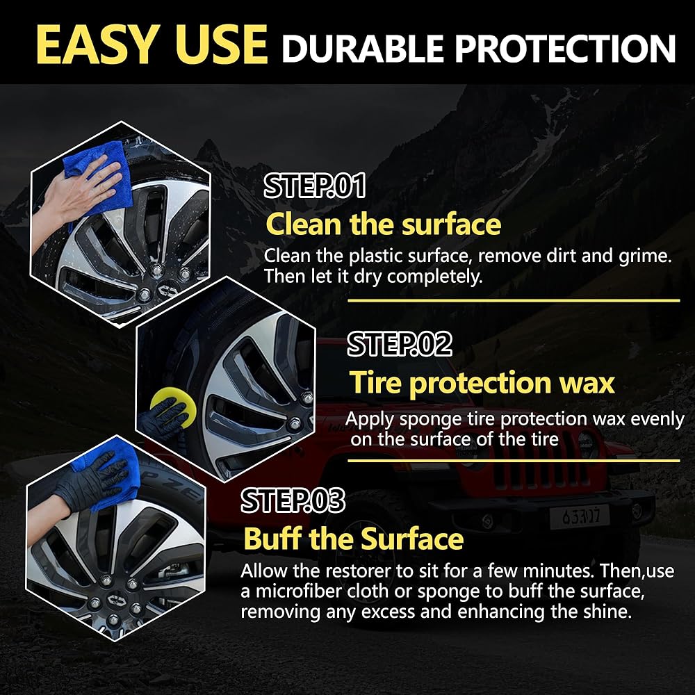 يجدد الأسطح الرمادية/الباهتة إلى ** النهاية السوداء الغنية ** - تمحو سنوات من الضرر بالأشعة فوق البنفسجية على الأختام المطاطية ، تقليم بلاستيكي ، وجدران جانبية الإطارات.