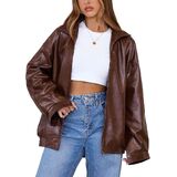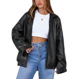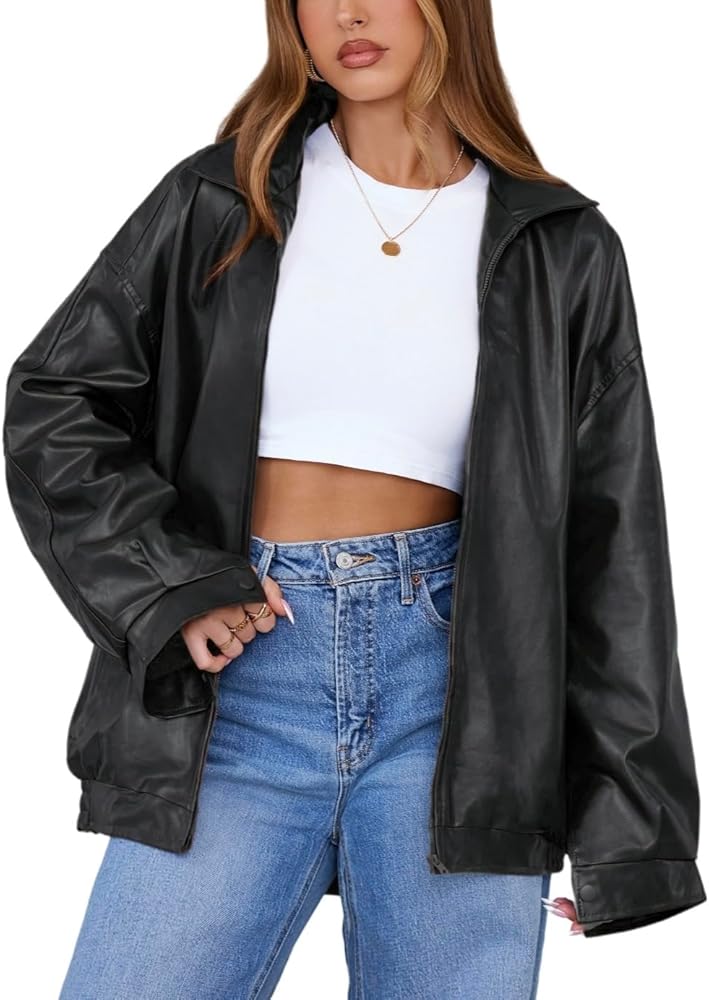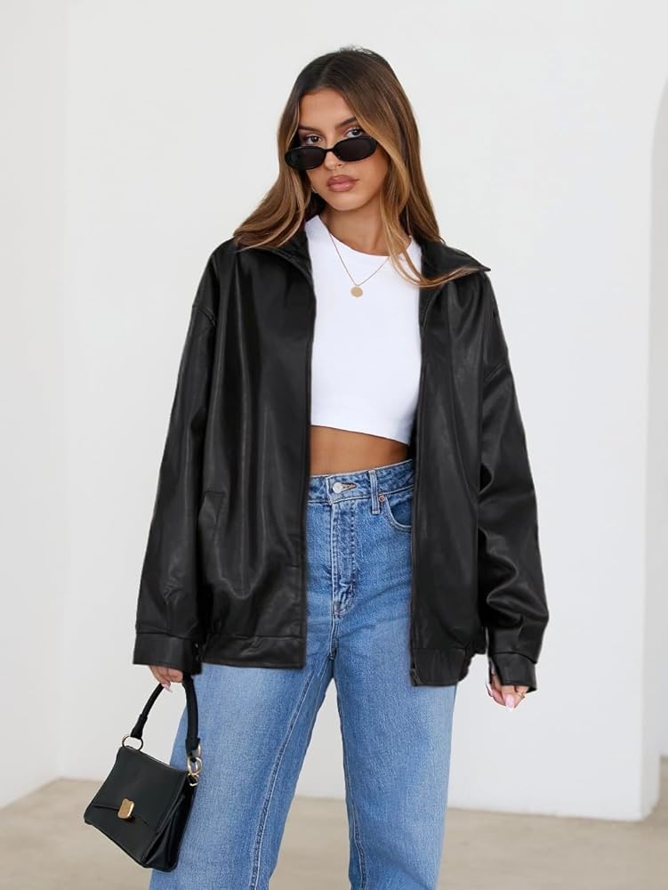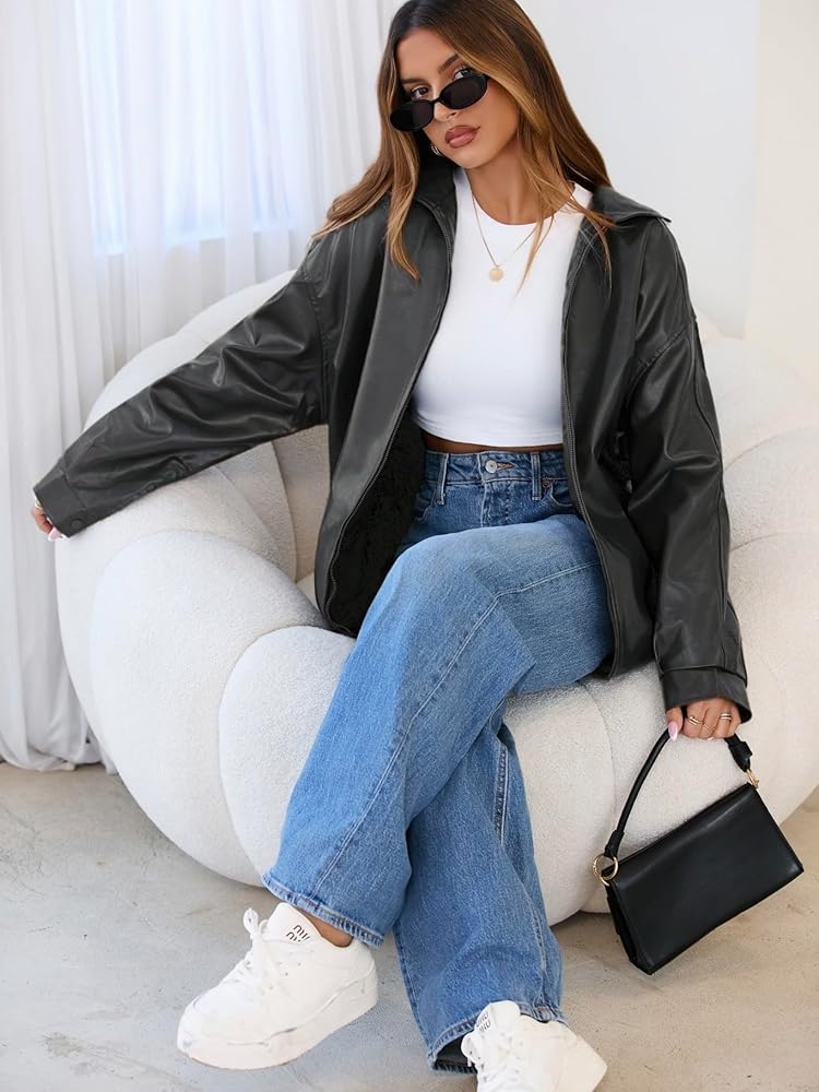 التصميم العصري: يضم هذه السترة الجلدية المقطعة ذات الحجم الكبير ، وأكمام طويلة ، وأسلوب دراجة نارية رجعية ، تجسد هذه السترة الجلدية المزيفة اتجاهات الأزياء Y2K مع توفير التنوع لكل من المناسبات غير الرسمية والرسمية.