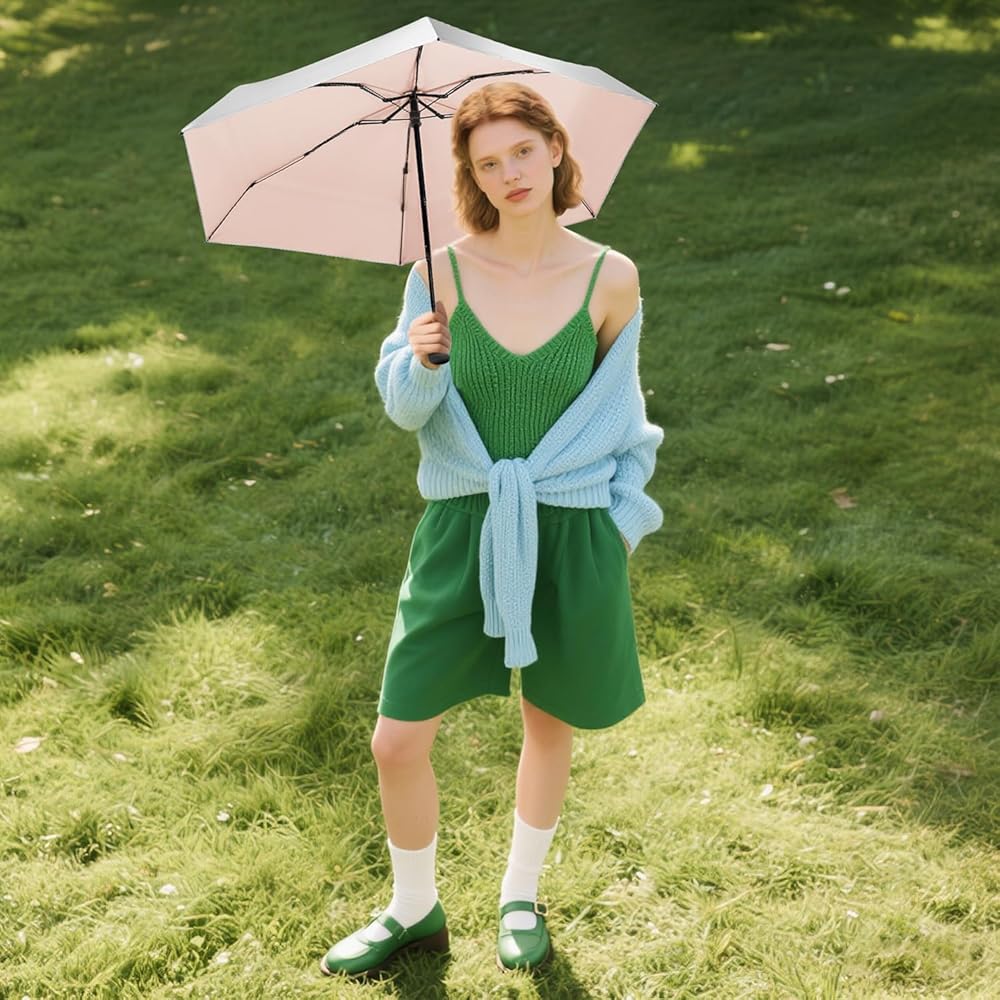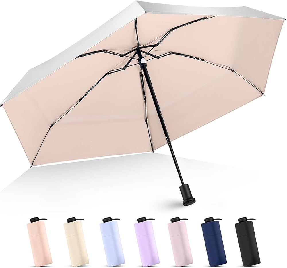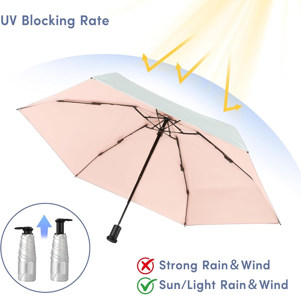 LEAGERA UPF 50+ Mini Umbrella for Travel - Compact Folding Sun Umbrella for Walking Summer Lightweight Purse Small Umbrellas for Women Girls