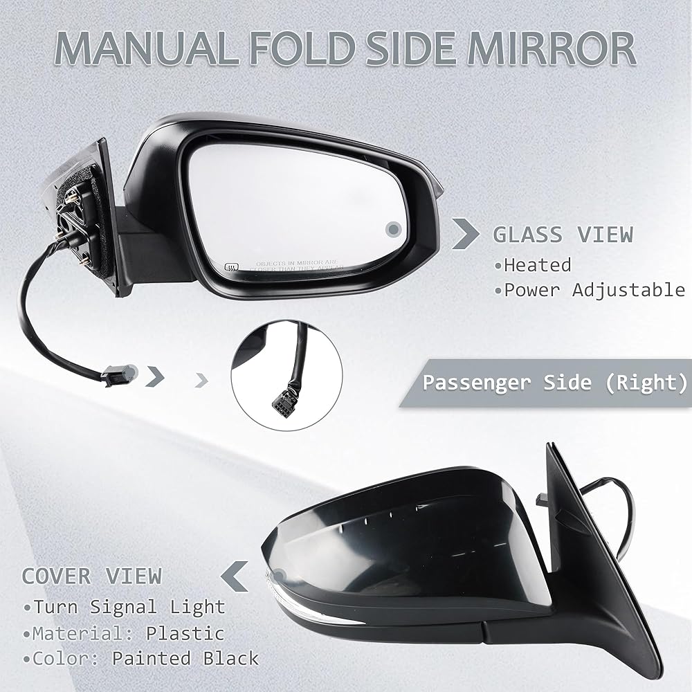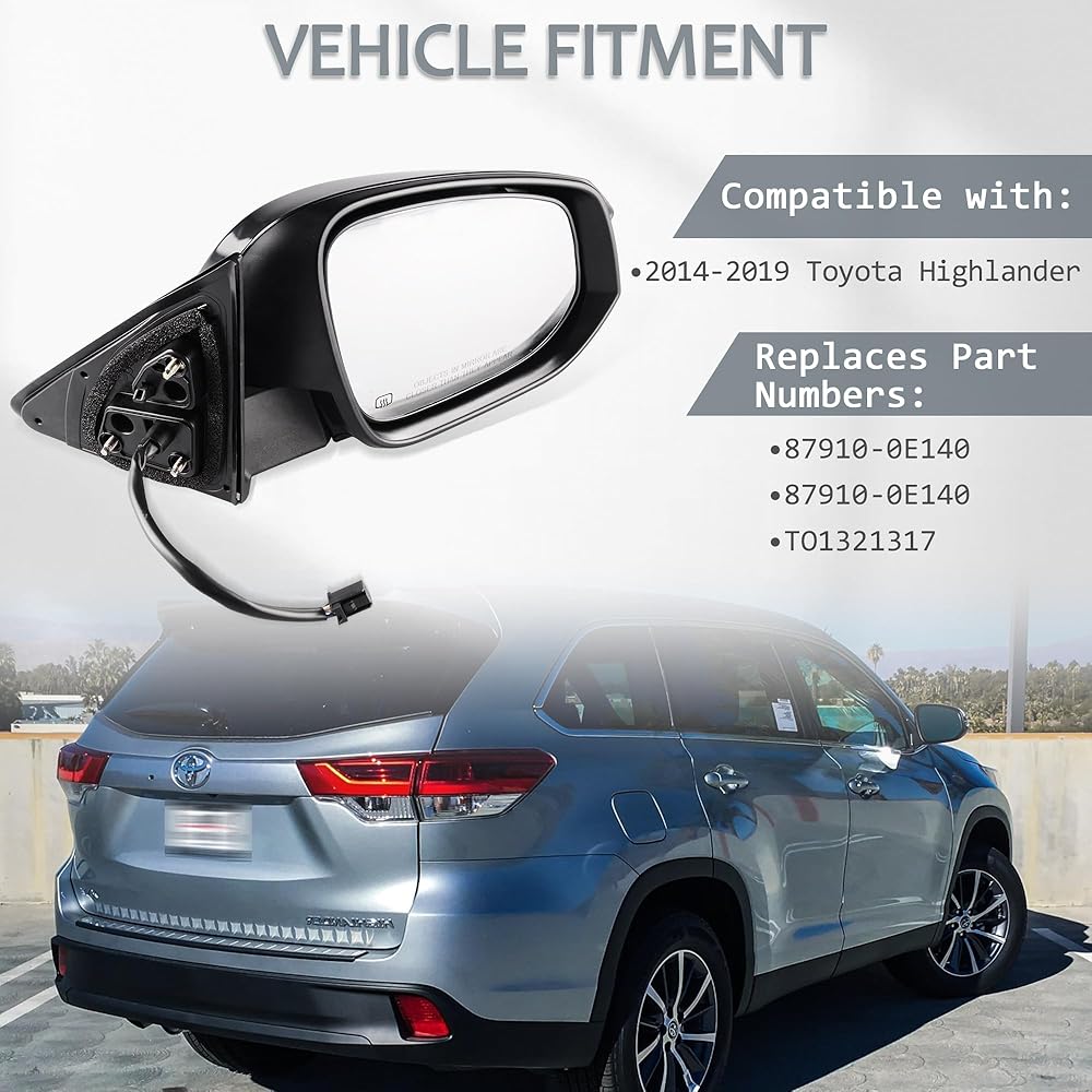 الطاقة الجانبية اليمنى من المنظر الجانبي المدفأة مرآة مرآة متوافق مع تويوتا هايلاندر 2014-2019 يحل محل 87910-0E140 إلى 1321317 (6pins)