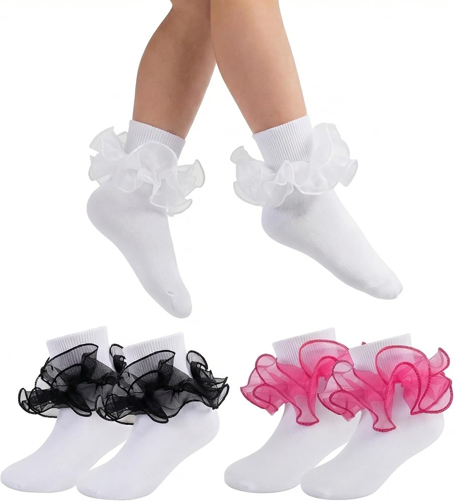 • 【Multiple Colors, Multiple Pairings】 The double-layer lace ruffle girls socks include six colors. These six colors can not only correspond to different special scenes but also pair with children's clothing, girls uniforms, long tops, princess dresses, shorts, dresses, etc
