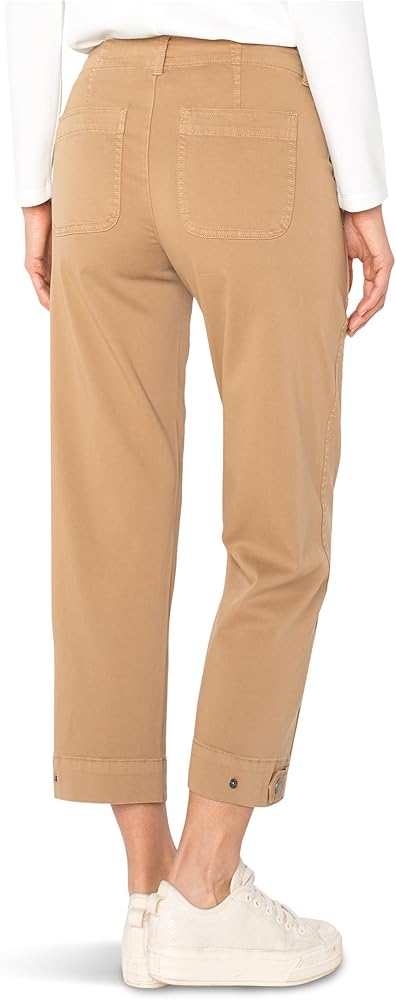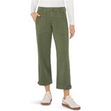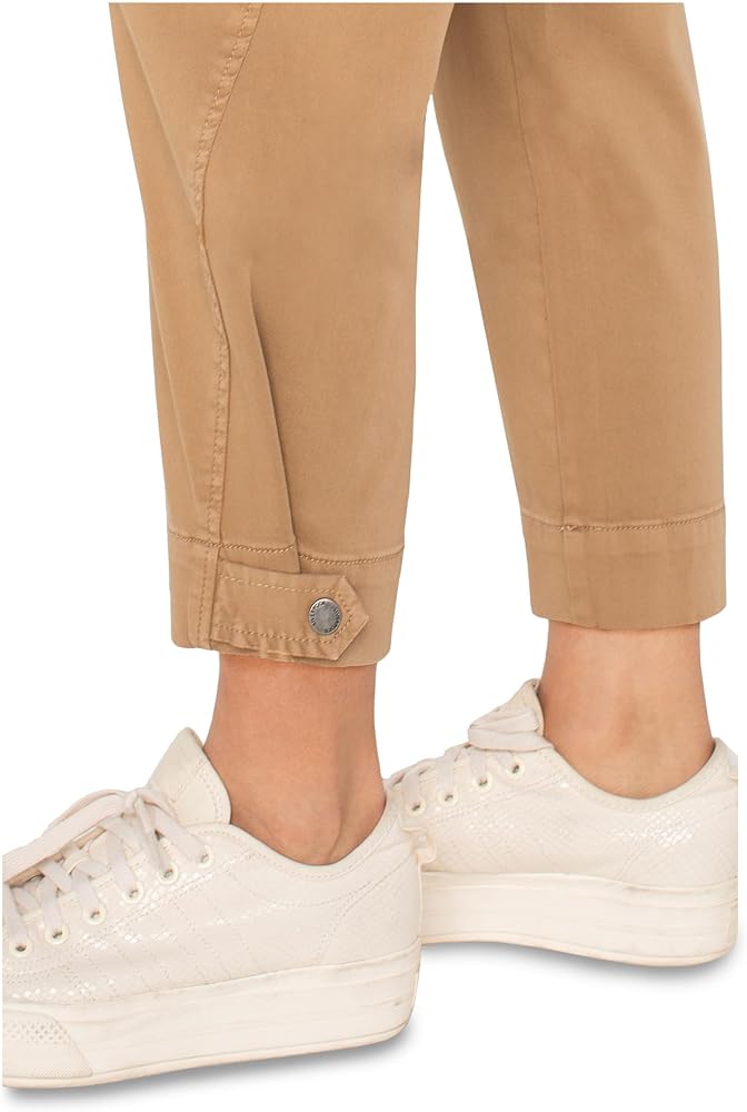 The Liverpool Mid-Rise Utility Crop w/ Tab Hem Pants are the ultimate blend of comfort, versatility, and elevated utility. Designed in a plaid jacquard knit or soft stretch twill, they feature back patch pockets, front utility stitching, and an adjustable tab hem that lets you switch up the vibe. With a mid-rise fit, and just-right stretch, they're made to move from casual brunch to city strolls with ease. Regular fit. Zip-fly and two-button closure. Two front hand pockets. 55% cotton, 42% rayon, 3% spandex. Machine washable.