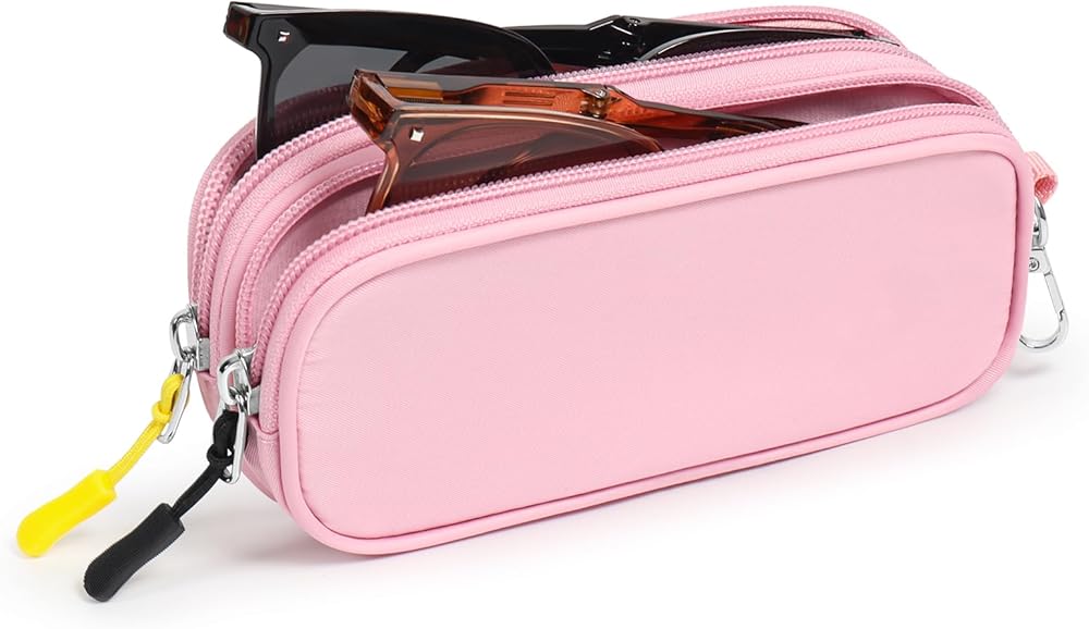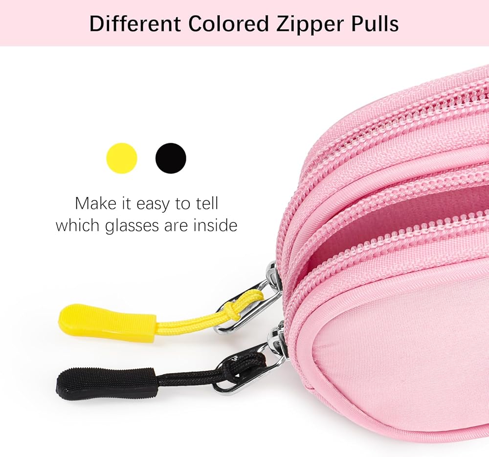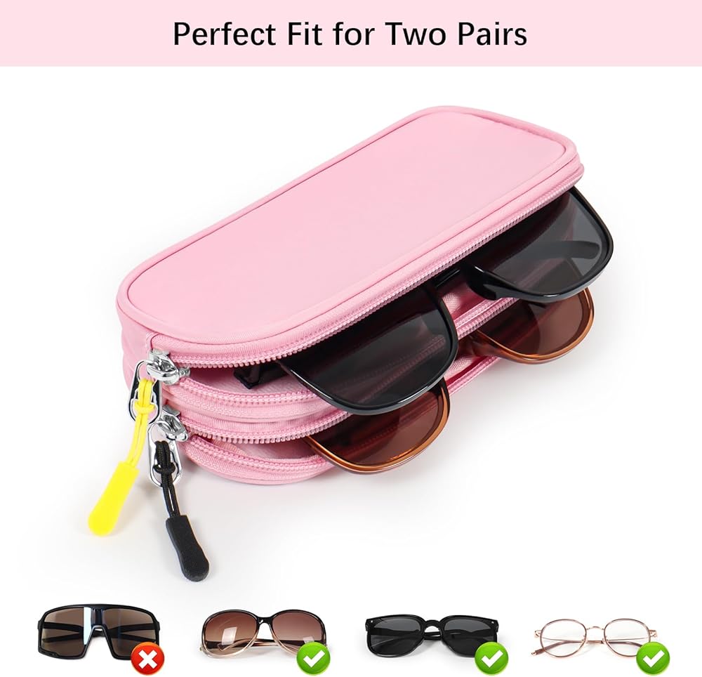 Convenient Dual Compartments: This double eyeglass case features two zippered compartments with color pull tabs—perfect for organizing sunglasses and everyday glasses in one eyeglasses organizer.