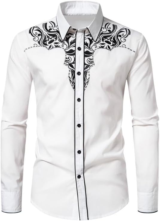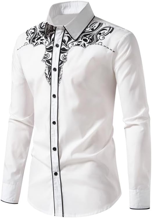 Mens Western Cowboy Shirt Casual Button Down Long SLeeve Embroidered Shirts Fashion Slim Fit Design Shirts