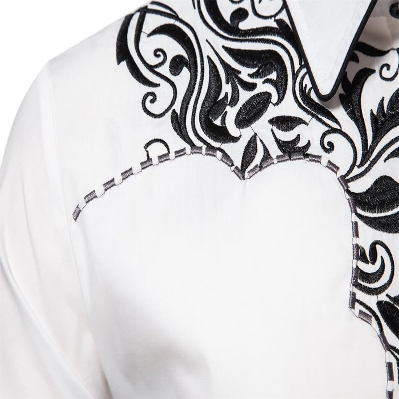 【Note】:For a relaxed fit, we recommend sizing up. Unveil sophistication with our men's western cowboy embroidered shirt. This package features 44 exquisite shirt, perfect for parties and events.For this casual button down slim fit embroidered shirt, please refer to the size chart carefully. If you have any questions before and after sales, please feel free to contact us, we will try our best to help you.