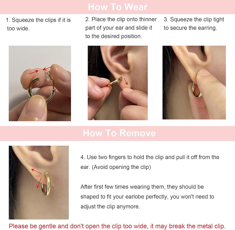 How to wear: Place the clip onto thinner part of the ear and slide it to the desired position, squeeze tight to secure the clips.