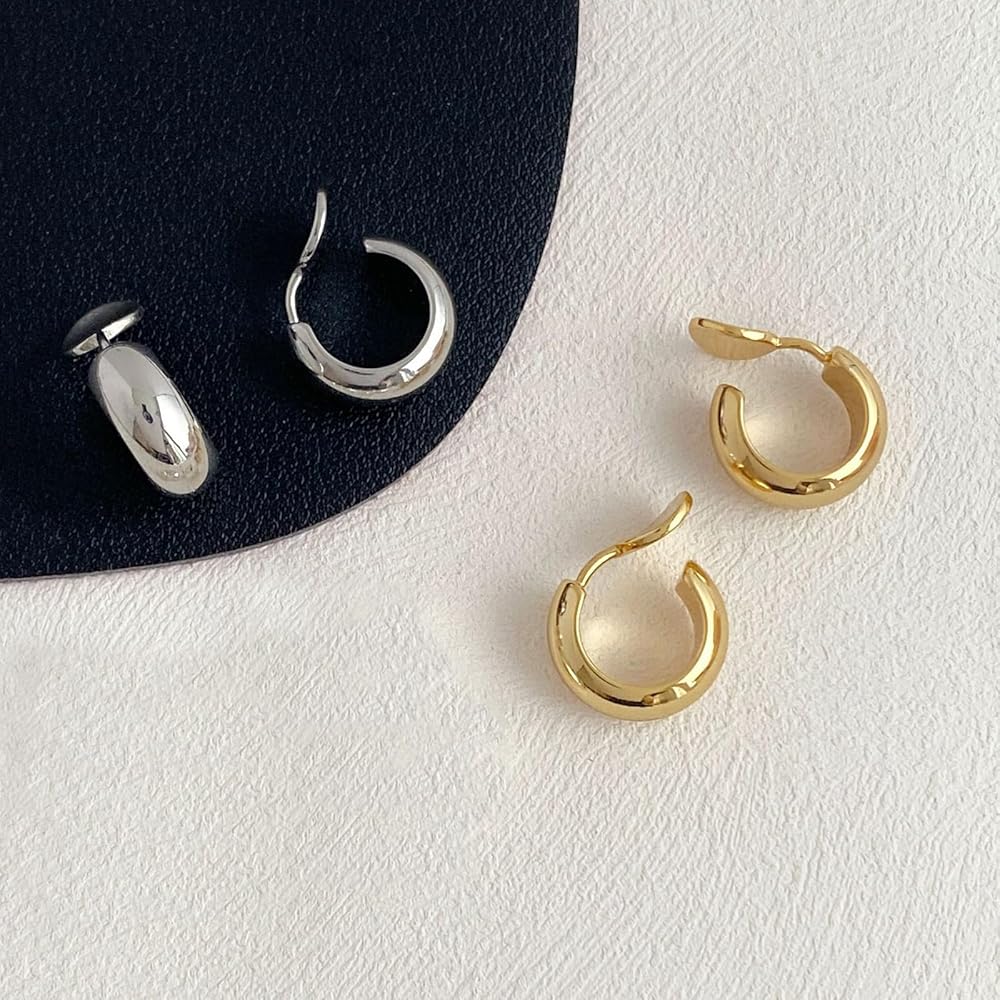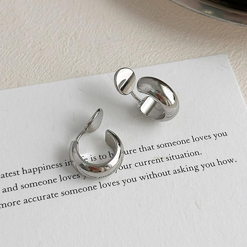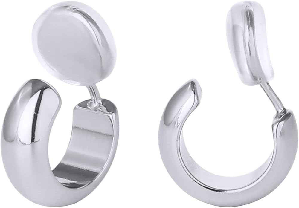 DESIGN: Chunky huggie-style clip on hoop earrings featuring a minimalist design, perfect for both casual and formal occasions