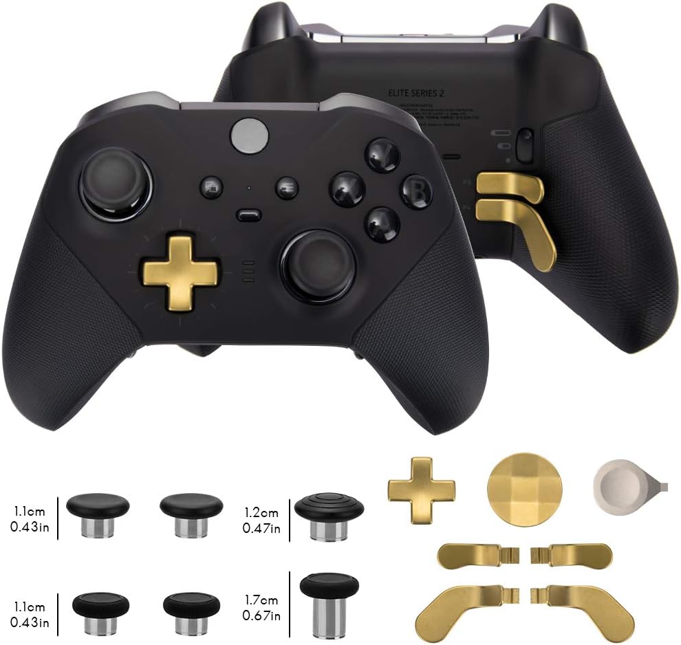 ملحقات ذراع التحكم من ايليت سيريز 2، قطع غيار عصي الابهام المعدنية لوحدة تحكم Xbox One Elite Series 2 موديل 1797، عصا تحكم تبديل وزارة الدفاع، المجاديف، وسادات دي، اداة تعديل (ذهبي)